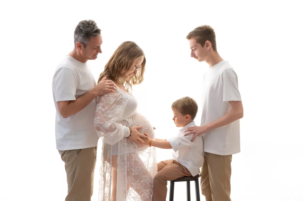 Je vous guide tout au long de cette séance pour un posing efficace, mettant en valeur vos courbes de grossesse mais également l’amour du couple et la cohésion familiale en cas d’enfants présents.
